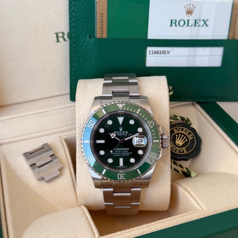 Rolex Submariner 116610LN. Den ældre reference med maxikasse i 40 mm, modsat den nyere reference 126610 som er 41 mm. Uret fremstår i god stand. Kommer med yderboks, inderboks, booklet og certifikat fra 2018.