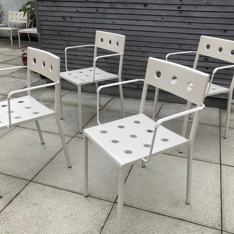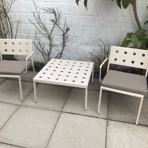 HAY Balcony loungestol/armstol/havestol i farven Chalk beige,stel af pulverlakeret aluminium.