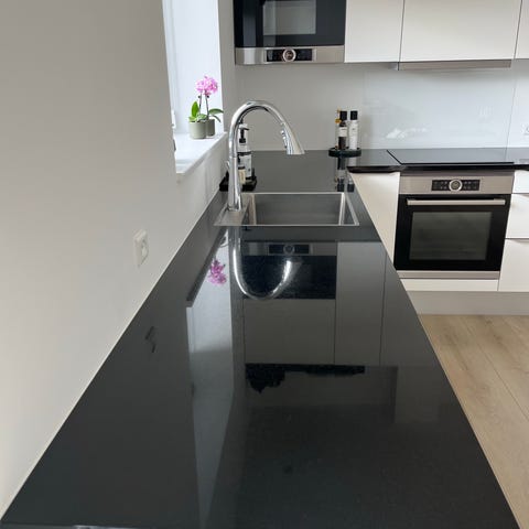 Køkkenbordplade sort granit med vask