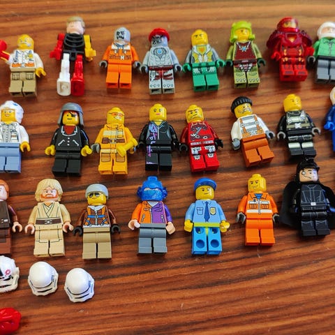 Sælger en samling af forskellige LEGO figurer fra flere populære serier.