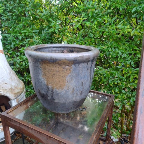 Krukke, Frostsikring mellem stor krukke til udendørs , H. 18 -17 cm x 22 cm.i diameter kan hentes for 90 kr. per stk.
