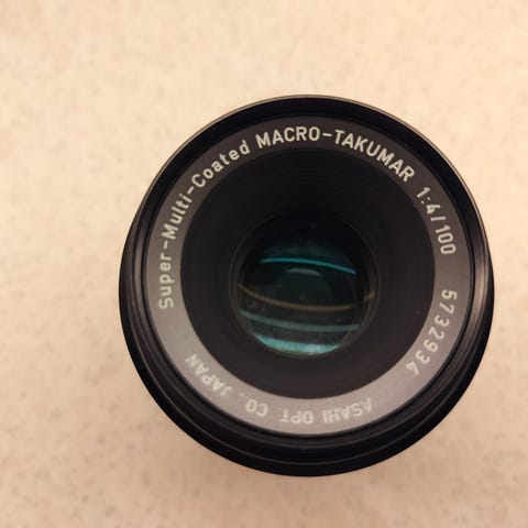 Super-Multi-Coated Takumar 1:3.5/135 i god stand, muligvis en anelse haze på bagerste element (svært at afgøre) så derfor den lave pris.