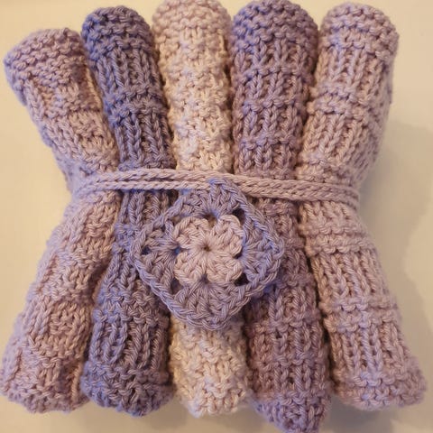 Hjemmestrikket værtindegave, karklude, vaskeklude mundserviet eller små gæstehåndklæder.