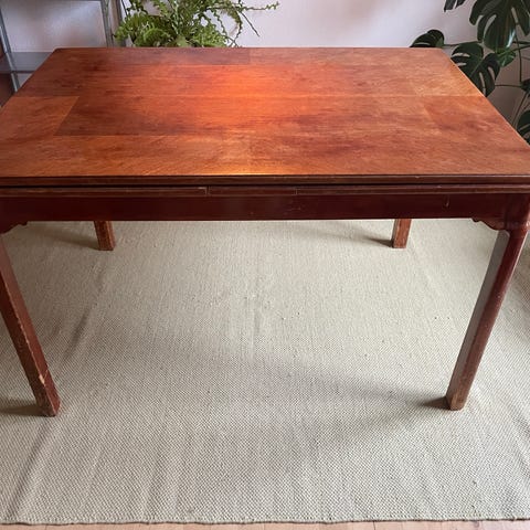Bordet er lidt tørt og plettet, men med en let slibning og oliebehandling bliver det så flot som nyt.