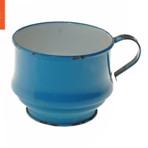 Blå emaljekrus (str. Ø 11 cm længde 13,5 cm)