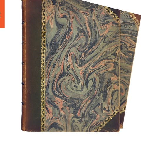 Antik bog med flot ryg med gyldne bogstaver og indbinding der passer til en retro indretningsstil: (Bog)