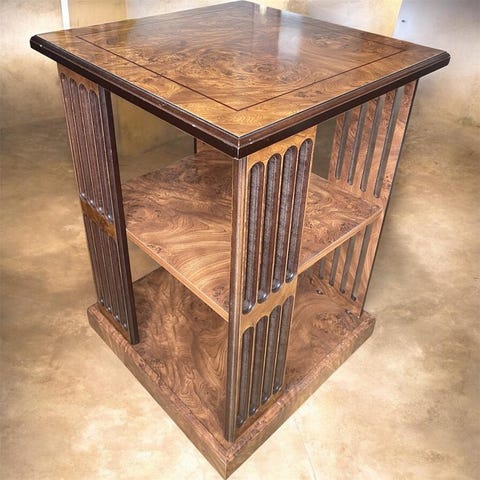 Drejbar træbogreol fra Frankrig, estimeret periode 1970-1980, mål 70 x 45 x 45 cm, vægt 9,6 kg, kan ikke låses, i god stand med nogle brugsspor og pletter efter alder. Klik på den blå "gå til varen" knap, for at købe eller byde på denne vare. Den samlede pris vil blive vist inden du afgiver dit bud.