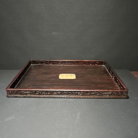 Et meget smukt udsmykket antikt kinesisk jadeplade-smykkestykke. Fra den sene Qing-periode. Dekoreret med HeHe-tvillinger, flagermus og lotusbladmotiver. Leveres med et passende underfad.