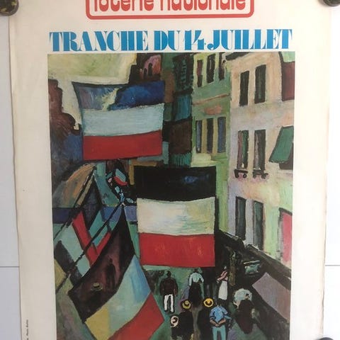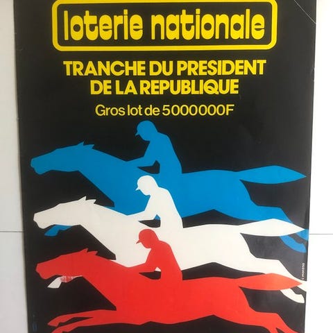 Original reklameplakat for Frankrig Loto – “33 millioner Superkassen”, lavet i 1989 af Raymond Savignac, en fremtrædende skikkelse i den franske plakatkunst i det 20. århundrede.
