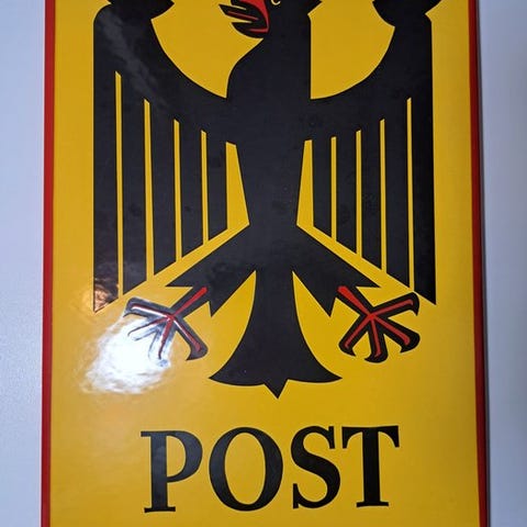 På grund af den stærke farvekombination af gul, rød, sort og hvid har skiltet et kraftfuldt retro-look.
