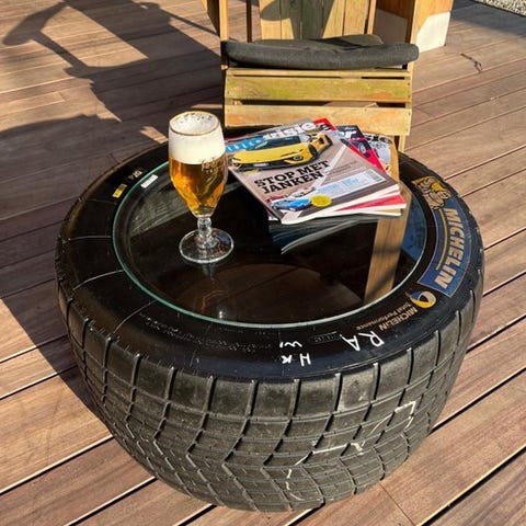Hankook - Lampebord - Gummi, sikkerhedsglas - Racerbil dæk kaffebord