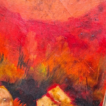 Maleriet er udført i olie på træpanel 50x75 med titlen "Tauromachia"