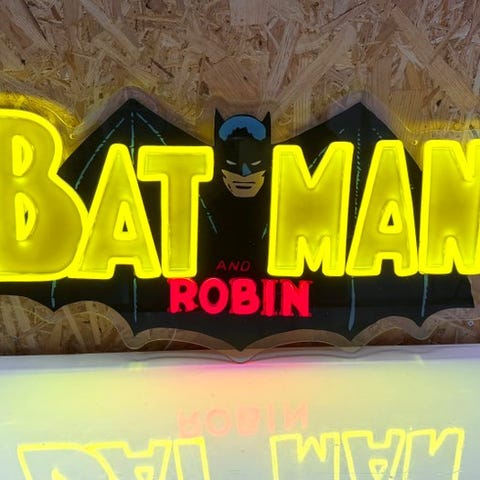 Meget særligt og dekorativt emaljeplade med klassisk Batman-billede i vintage filmstil.
