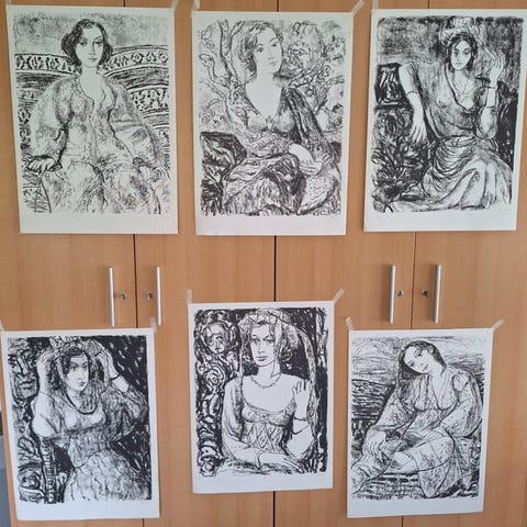 Særlige og farverige serigrafier på håndfremstillet papir af den hollandske kunstner Anneke Peereboom (1950).