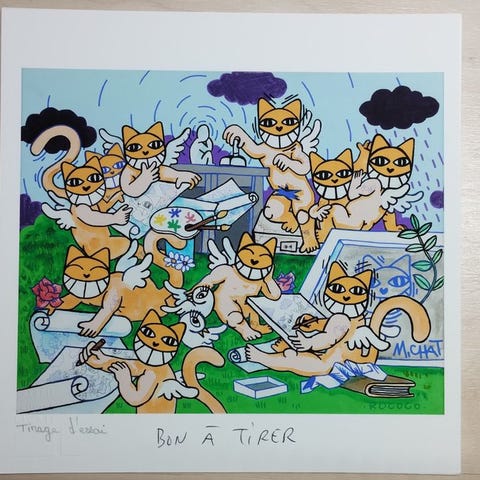 Silketryk fra 2018, Chat Paris, erhvervet ved åbningen af MAUSA i Jura. Begrænset udgave til 300 eksemplarer. Beholdes fladt, aldrig indrammet. Sikker forsendelse med forsikring.