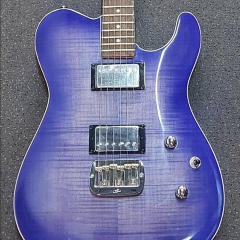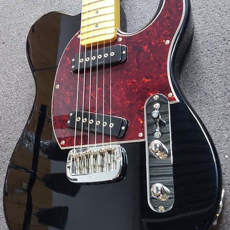 G&L Tribute Series ASAT Deluxe Carved Top i Transluced Black er en elektrisk guitar, kendt for sine alsidige humbucker-toner og den klassiske Telecaster-følelse.