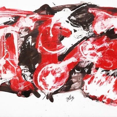 Dette værk kombinerer en fotografisk base med manuelt påført oliepastel, hvilket resulterer i et unikt mixed-media-kunstværk. Den farverige komposition viser et stilleben med tulipaner og interiørelementer, udført i ekspressive nuancer, der kendetegner grafisk kunst fra de tidlige 1990’ere.