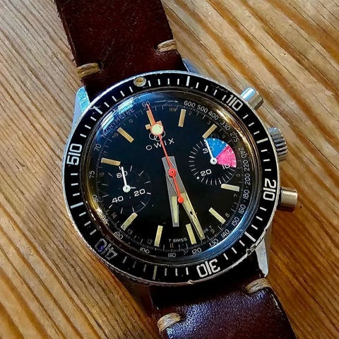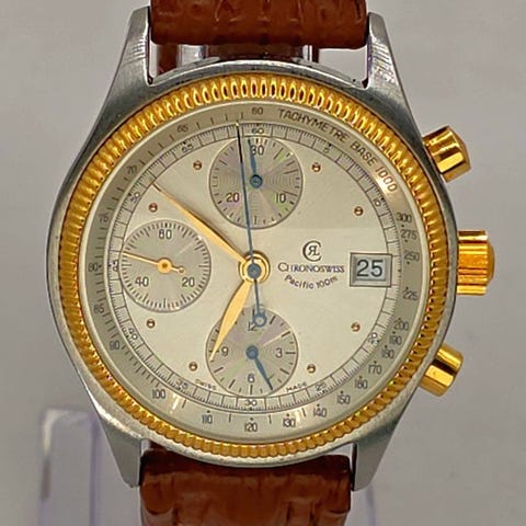 Alfred Rochat & Fils kronograf med håndoptrukket Valjoux 23-urværk, 37 mm stål- og guldbelagt kasse, 18K guldbelagt krone, begrænset Schweiz 1999-udgave nr. 29, sort læderrem, fremstillingsår 1980, i meget pæn stand med lettere brugsspor og forsikret forsendelse. Klik på den blå "gå til varen" knap, for at købe eller byde på denne vare. Den samlede pris vil blive vist inden du afgiver dit bud.