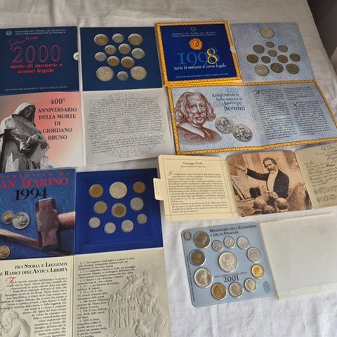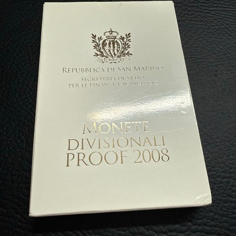 DESCRIZIONE Poste San Marino SpA - Divisione Filatelica e Numismatica har udarbejdet en særlig emballage, der indeholder de otte udgaver af divisionsmønterne og to 2-euro commemorative mønter fra år 2023, alle i den særlige proof-version. 2-euro mønterne er commemorative af ”500° års jubilæet for Perugino” og af ”500° års jubilæet for Luca Signorelli”.