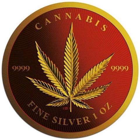 Cannabis, kendt under forskellige navne såsom marihuana, er en plante der stammer fra Central- eller Sydasien. Den er blevet anvendt i århundreder til rekreative og entheogene formål samt i forskellige traditionelle medicinske praksisser. Denne udgave viser en afbildning af den ikoniske reggaesanger Bob Marley prydet med en sort platin-belægning. Udgivelsestallet er