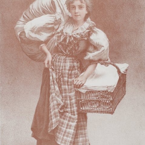 Denne ikoniske komposition viser en savoyardisk ung dame i traditionelt dragt, der holder garnnøgler i mangefarver og bevæger sig gennem et alpint landkabslandskab med får og snedækkede bjerge i baggrunden.