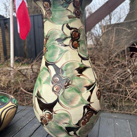 Keramik skål 30 cm diameter. Meget speciel, har desværre 1 skade som ses på billede. Hentes i Kalundborg eller sendes med bobelplast på købers regning. Prisen er fast.