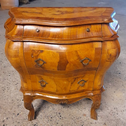 Victoriansk bombekommode, topplade trænger til en kærlig hånd (se foto) , men ellers i fin stand. Ingen nøgle.