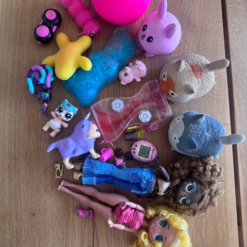 90 kr.Blandet legetøj, træ puslespil bamse, dukke kaffestel, "Nopper" byggeklodserAarsFøj til favoritter.