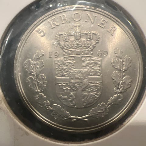 Danmark 5 kroner mønt 1961.