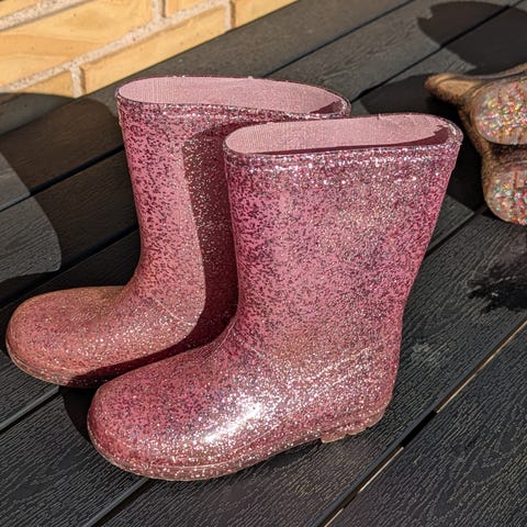Sorte gummistøvler med mega meget glimmer i str 27. Fra Nordbjørn.