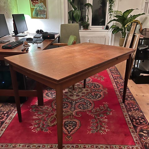 Tydelige brugspor, trænger til ny overfladebehandling.