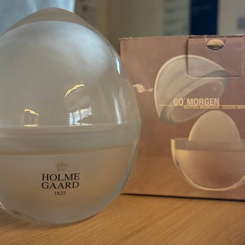 Dip-i-dip æggebægere i klart glas fra Holmegaard - detaljer i annoncen