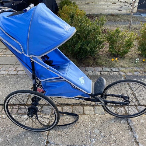 Baby Jogger løbevogn med 3 hjul i lilla tekstil. Vognen har stort justerbart kaleche, polstret sæde med sele og fodstøtte. Udstyret med luftfyldte hjul og fast forhjul, som egner sig til løb og gåture på ujævnt underlag. Stel i metal med skumhåndtag og opbevaringskurv under sædet til taske eller indkøb.
