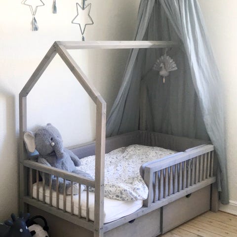 Brugt 1 års tid. Vores børn ønsker at sove sammen, derfor sælges den allerede. Tilskåret madras medfølger.