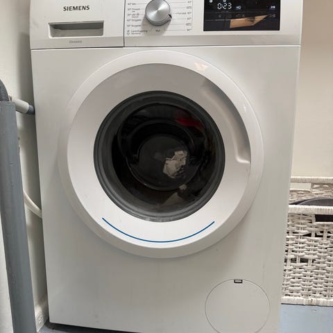 Siemens frontbetjent vaskemaskine i hvid. Maskinen har frontbetjent betjeningspanel med drejeknap og display. Velegnet til almindelig tøjvask i husstande, hvor der ønskes en standard frontbetjent løsning. Købt sept 25 sælges grundet flytning. Tumbler AEG med sælges kontakt ved interesse