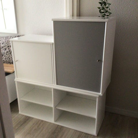 4 stk Mistral reoler, væghængte. 3 med plads til fx. bøger, 1 med 8 skuffer. Sælges samlet. Som nyt.
