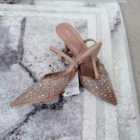 Zara festsko str. 37 pink med fjer