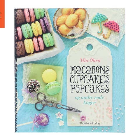 Mia Öhrn Macarons Cupcakes Popcakes kogebog med opskrifter på macarons, cupcakes, popcakes og andre søde kager. Bogen indeholder trin-for-trin vejledninger, billeder og inspiration til bagning af småkager og kager i forskellige varianter. Trykt på dansk og udgivet af Politikens Forlag.