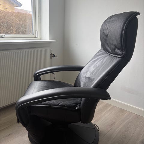 ET stk. Berg Furniture cognac farvet læderlænestole af dansk kvalitet med rigtig god siddekomfort kan dreje og vippe tilbage. ligeledes kan fodskammel justeres efter behov. Den er i rigtig god stand sælges for kun 2.495 kr. da den har stået i skånsomt rygerhjem. Nypris for tilsvarene model er i dag ca. 25.000 kr. Tlf. 40742594.