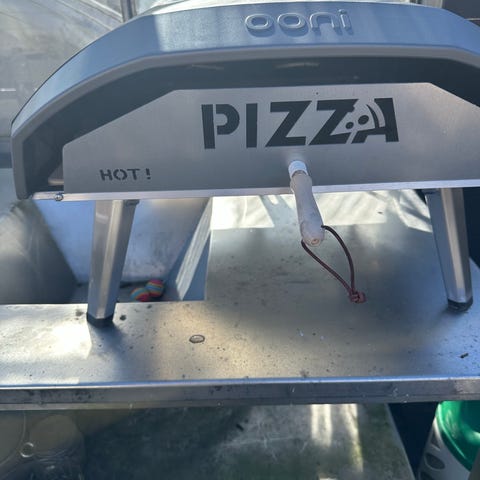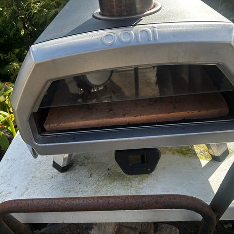 Ooni gasfyret pizzaovn med pizzasten og tilhørende overtræk. Ovnen er beregnet til udendørs brug og tilsluttes gas via slange. Konstruktionen er i metal med integrerede ben for stabil placering på bord eller stativ. Åbningen foran giver plads til pizzasten og håndtering med pizzaspade. Overtrækket beskytter ovnen under opbevaring og transport. Velegnet til bagning af pizza og andre mindre retter udendørs.