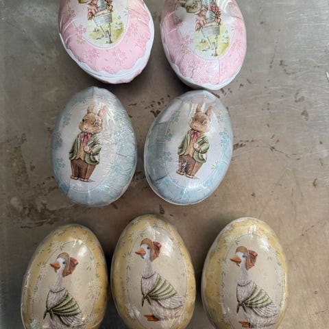 10 Pap påskeæg til at hænge. Måler ca. 6x3 cm