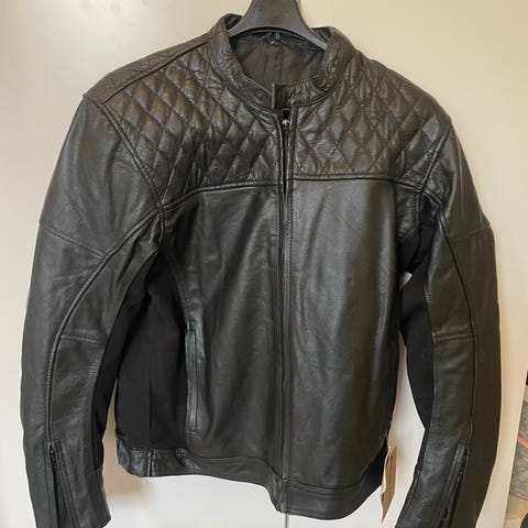 Fin Mc læderjakke i mærket Course. Den er brugt ganske få gange. Har både ryg, skulder og albue beskyttelse.