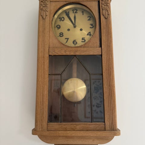 Urværket leveres komplet med værk, skive med visere, lodder, pendul og flot buet glas låge.