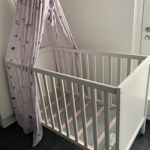 IKEA SUNDVIK tremmeseng: er i god stand men har bidemærker fra min søn når han har fået nye tænder 🦷🙈. Sengen er derfor gratis.