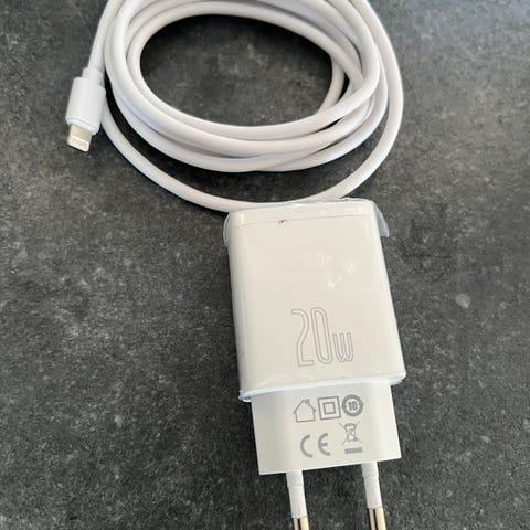 Sælger denne 20W USB-C Power Adapter inkl. USB-C til Lightning kabel – helt ny og ubrugt i emballage.