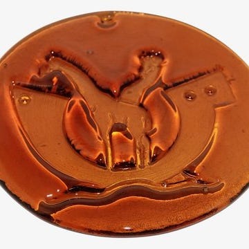 Holmegaard, karamelfarvet solfanger i form af firkløver fra 1970'erne.