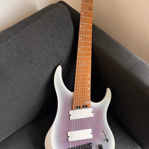 Jeg vil gerne sælge min 7 strenget Peavey Predator Plus TR7 med Floyd Rose. Guitaren spiller og lyder godt. Neck pickuppen er loddet om så den lyder som en singlecoil. Sendes ikke.