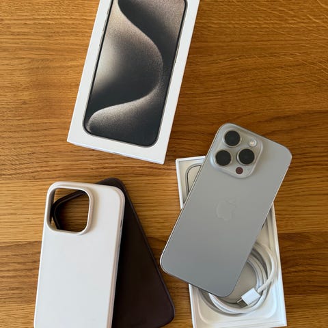 Apple iPhone 15 Pro space grey med 128 GB og i titanium. Ingen ridser eller lign i skærm. Meget velholdt