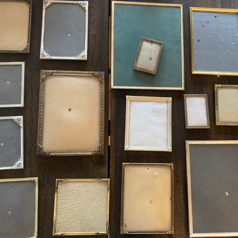6 stk vintage billedrammer i metal/messing med buet glas – små dekorative rammer