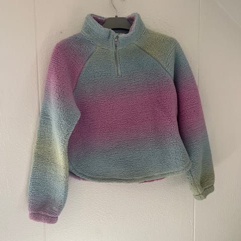 H&M fleecebluse til pige i str. 158. Blusen er fremstillet i blødt fleece-materiale og har et multifarvet design med pastelfarver. Velegnet som varm trøje til hverdagsbrug eller som ekstra lag på kølige dage.